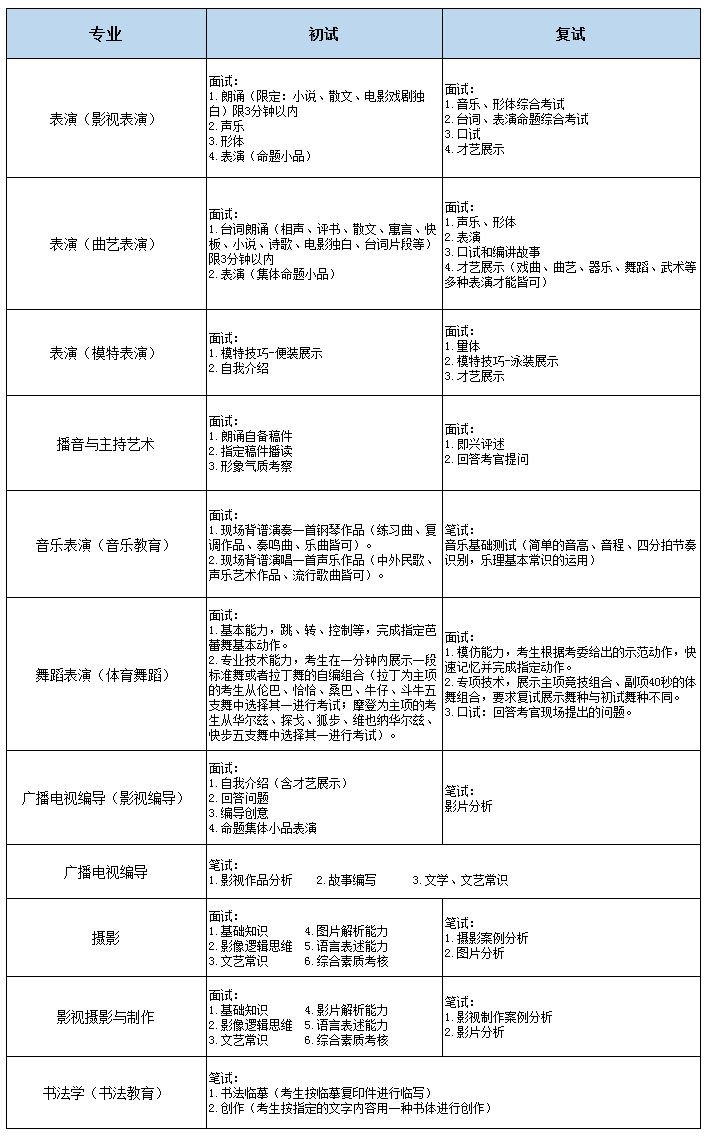注:音乐表演(音乐教育)专业仅收招声乐和钢琴方向